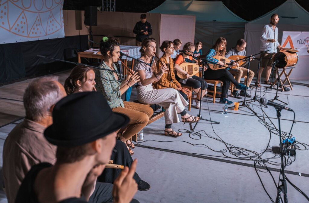 Az év végi Tatai Sokadalomban a fiatal népzenészek színpadán az év alatt megtanult dallamokból közös muzsikálás válik.