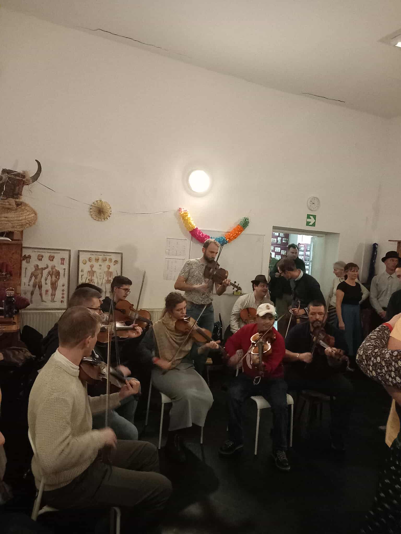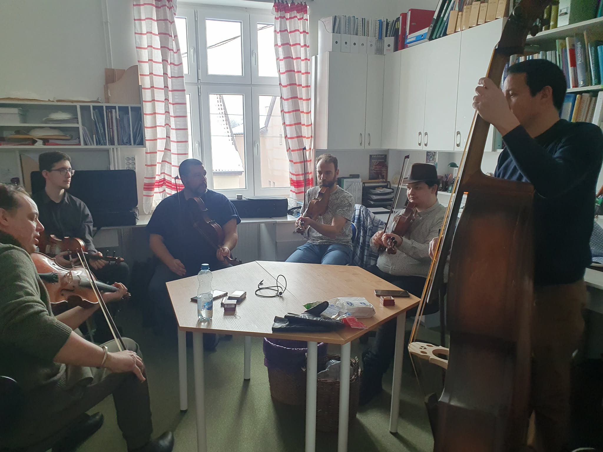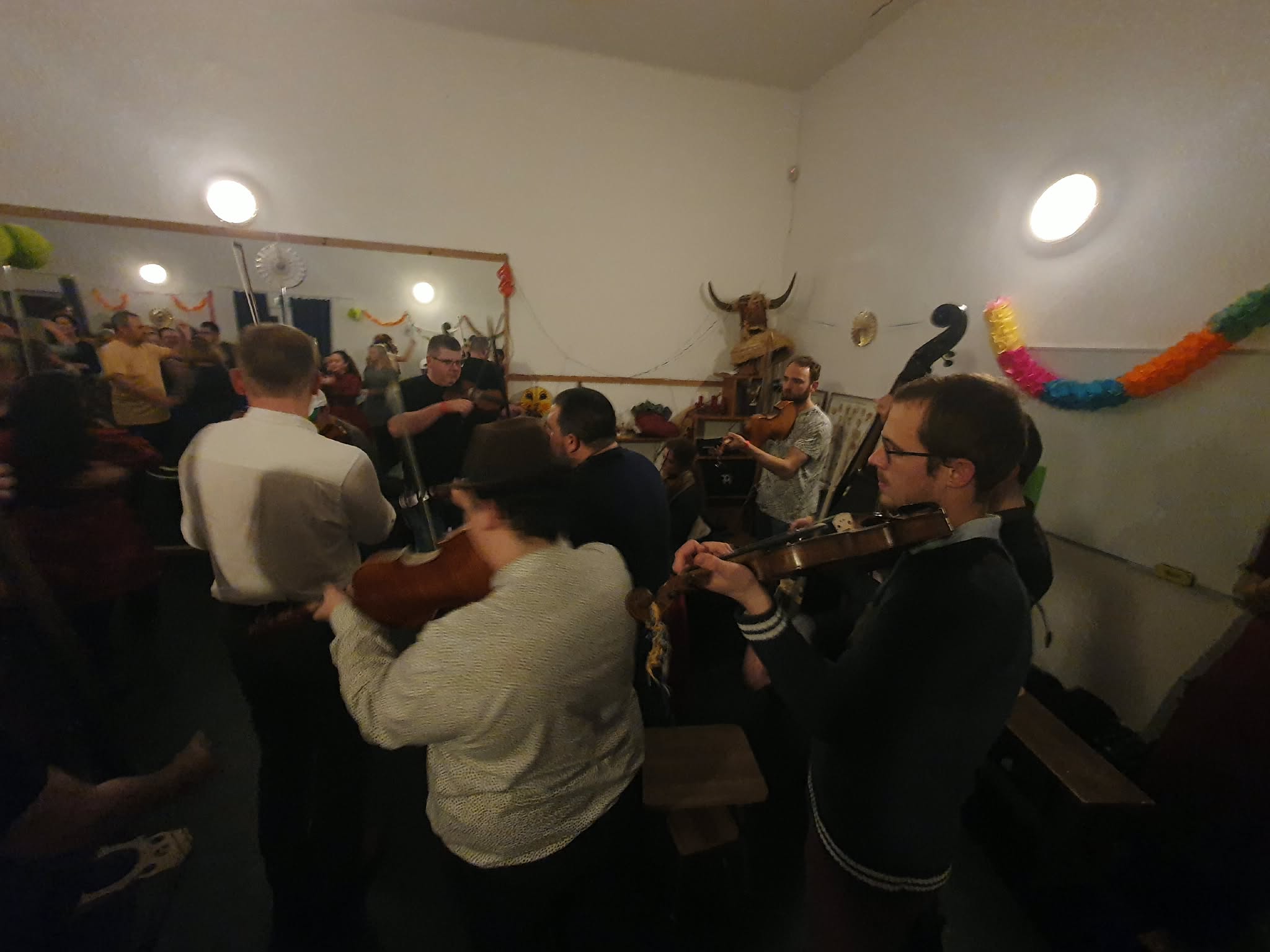 Vendégünk volt Kiscsipás, aki a vonósoknak tartott hegedű kurzust, Éri Marci és Szentirmai Gerely pedig brácsa és bőgő kurzust. A gyülekezeti teremben ezzel egyidejűleg Angyal Marianna és Kiss Zsolt tartott kalotaszegi, azon belül is melegszamosi román forgatós tánckurzust, amire nagy örömünkre hatalmas volt a túljelentkezés.